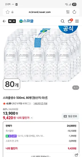 스파클 500ml 80병