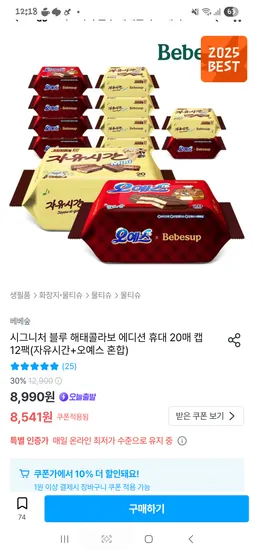 베베숲 시그니처블루 휴대용 20매 캡 12팩 자유시간 오예스