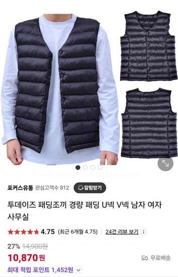 패딩조끼 경량 패딩 U넥 V넥 (10,870원/무배)