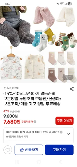 겨울 기모양말 8켤레 6,880원 핫딜 50%세일하네요