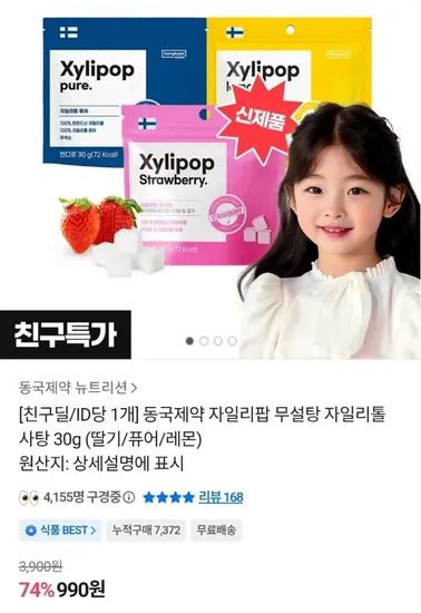 동국제약 자일리팝 무설탕 자일리톨 첫구매딜 990원