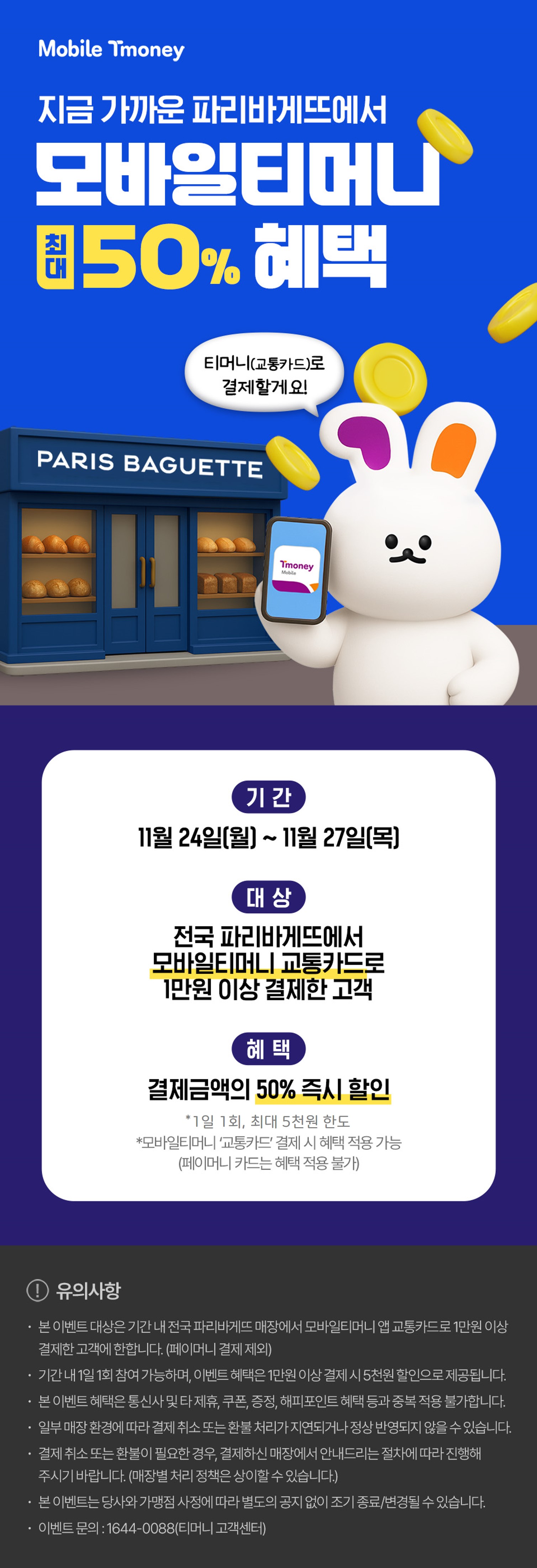 파리바게트 5천 원 할인으로 맛있는 빵을 만나보세요! 매장 결제가 좋고, 모바일 티머니 사용 전 확인하시면 더욱 편리할 거예요.