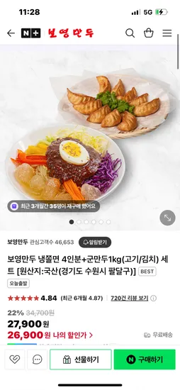 네이버)보영만두 냉쫄면 4인분+군만두1kg 26900원 무배