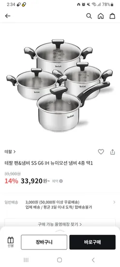 테팔 뉴 이노바시오 인덕션 프라이팬 냄비 4종 세트 유리뚜껑