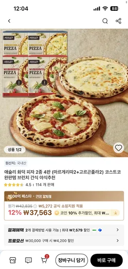 애슐리 화덕피자 2종 4판세트 (마르게리따2+고르곤졸라2)