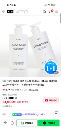 에이델 Aedel 바디워시 샴푸 트리트먼트 1+1