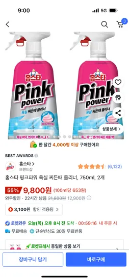 홈스타 핑크파워 욕실 찌든때 클리너 750ml 2개