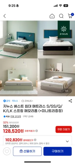 지누스 침대 매트리스 미니트리 증정