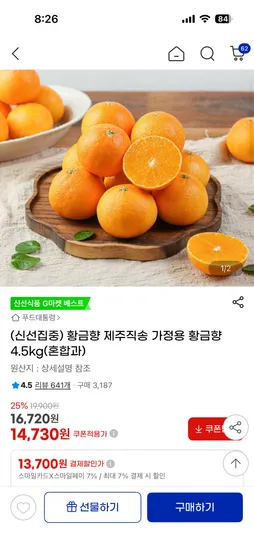 냉동블루베리 3kg 16,297원 Dole 레드자몽 3kg 8,343원 파인애플 3개 10,842원 화이트용과 10개 14,925원 아보카도 10개 8,343원 제주감귤 로얄과 4.5kg 11,900원