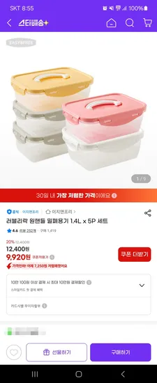 러블리락 원핸들 밀폐용기 1400ml 5개