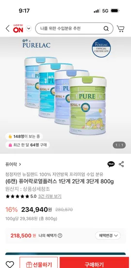 퓨어락 로열플러스 1-3단계 800g 6캔