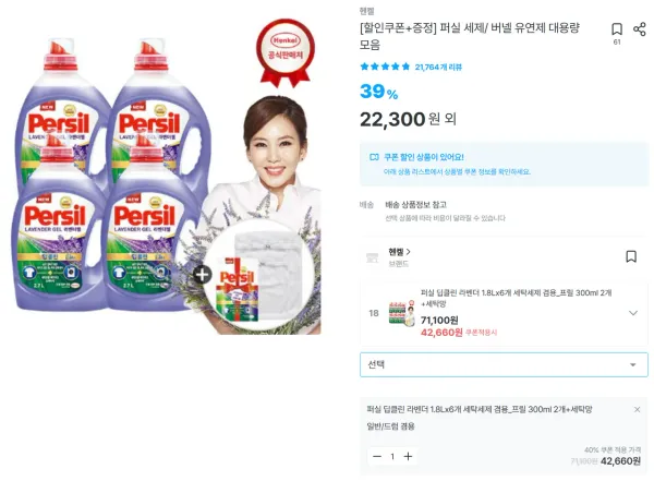 퍼실 딥클린 라벤더 1.8L x 6개