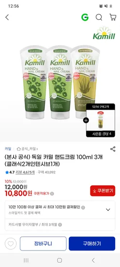카밀 핸드크림 100ml 3개