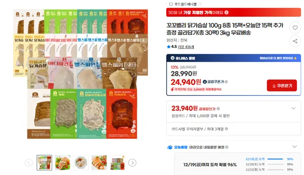 꼬꼬밸리 닭가슴살 100g 8종 외 다양 30팩 골라담