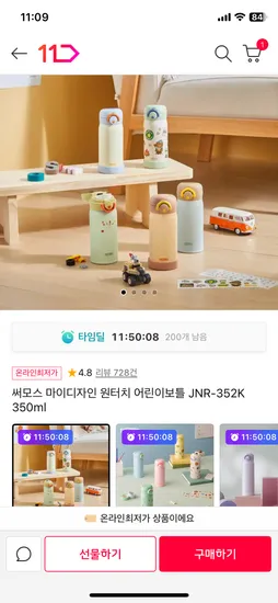써모스 마이디자인 원터치 시즌3 보틀 350ml 스텐세척제
