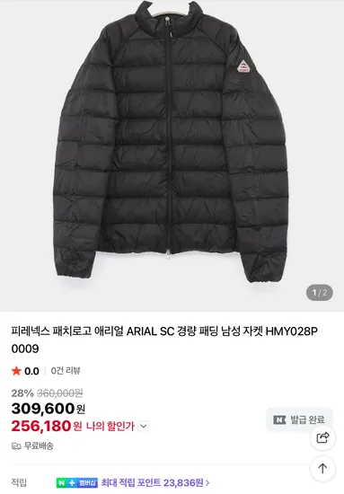 피레넥스 애리얼 경량패딩 26.4만원