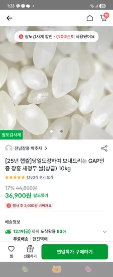 GAP인증 햅쌀 10kg 새청무 단일품종 상등급