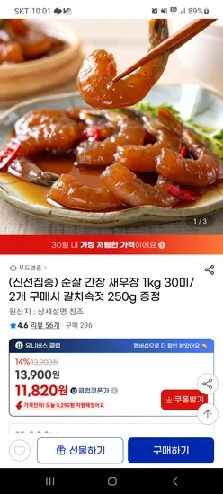 순살 간장 새우장 1kg 30미 2개 구매 시 갈치속젓 250g 증정