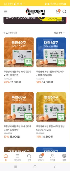 알부자집 특란 40구 4000원 대란 60구 6000원