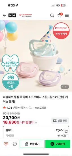 더블하트 통잠 쪽쪽이 1+1 케이스