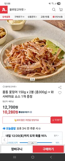 몸통 꽃징어 150g 2봉 와사비마요소스 1개