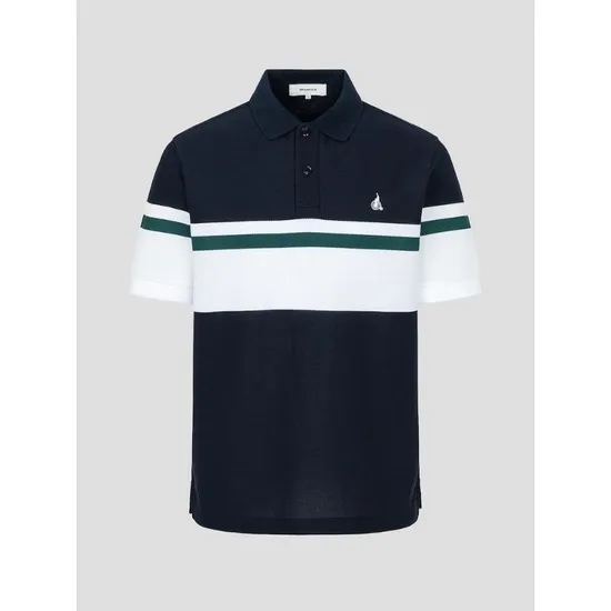 빈폴멘 컬러블럭 칼라넥 반소매 티셔츠 네이비