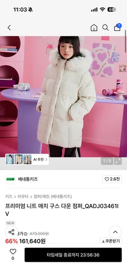 베네통키즈 니트 매치 구스 다운 점퍼 110-145사이즈