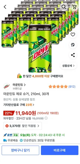 코카콜라 제로 350ml 24입 + 코카콜라 제로 190ml 30입