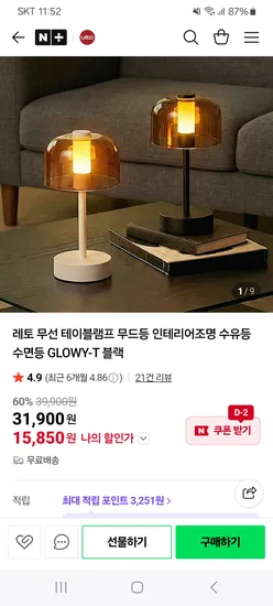 레토지엠에스 무선 테이블램프 무드등 인테리어조명 수유등 수면등