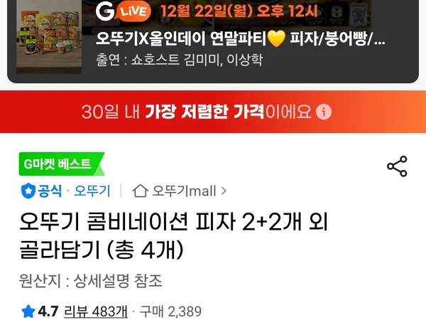 오뚜기 콤비네이션 피자 2+2개 골라담기