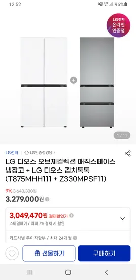 LG 디오스 오브제컬렉션 매직스페이스 냉장고 김치톡톡 김치냉장고