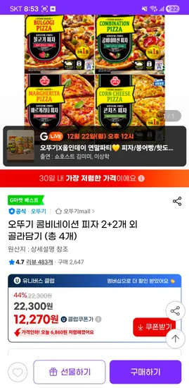 오뚜기 콤비네이션 피자 2+2개 골라담기