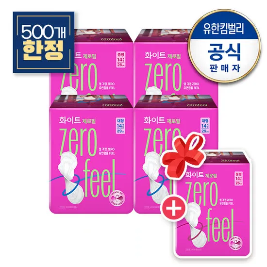 화이트 제로필 생리대 4팩 중형 14매 1팩